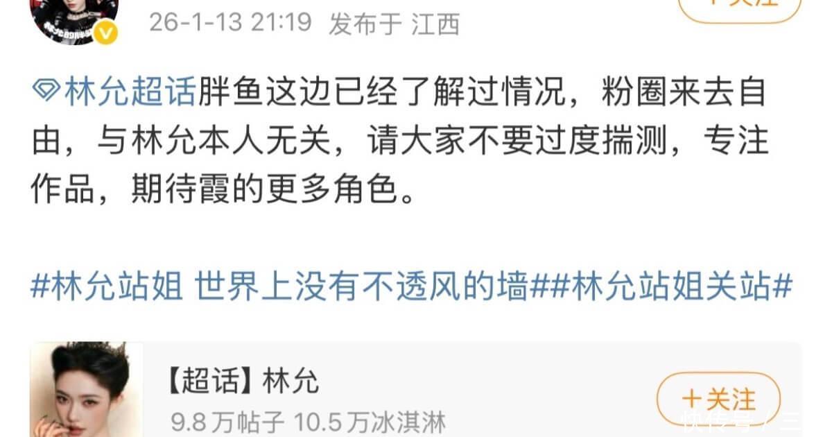 没想到林允才进组,就天降大瓜?一位跟随林允数年的站姐,突然无预警关站!